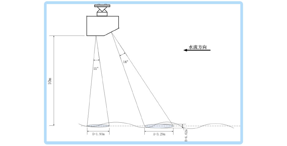 雷達流量計集成雷達水位計和雷達流速計,雷達水位計天線波束角為14×10°,雷達天線角度為14×32°,水位計照射水面時,照射區域類似一個圓,流速計照射水面時,照射區域類似一個橢圓區域,準確理解雷達波的照射范圍有助于選擇合適的地方安裝,避免一些容易被干擾的場景,如河流兩邊隨風擺動的樹枝。