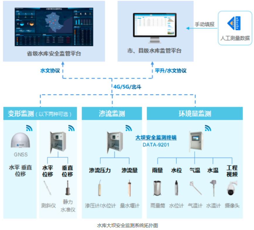 水庫大壩是攔洪蓄水和調節(jié)水流的水利工程建筑物,《國務院辦公廳關于切實加強水庫除險加固和運行管護工作的通知》(國辦發(fā) [2021] 8號),以吸2021年度總河湖長會議,均要求加快建設水庫大壩安全監(jiān)測設施,提升信息化管理能力,健全水庫大壩安全運行監(jiān)測系統(tǒng)。水庫大壩安全監(jiān)測項目主要包括滲壓滲流和壩體的位移、沉降和變形監(jiān)測,監(jiān)測范圍包括壩體、壩基,以吸影響工程安全的泄輸水建筑物和近壩岸坡等。