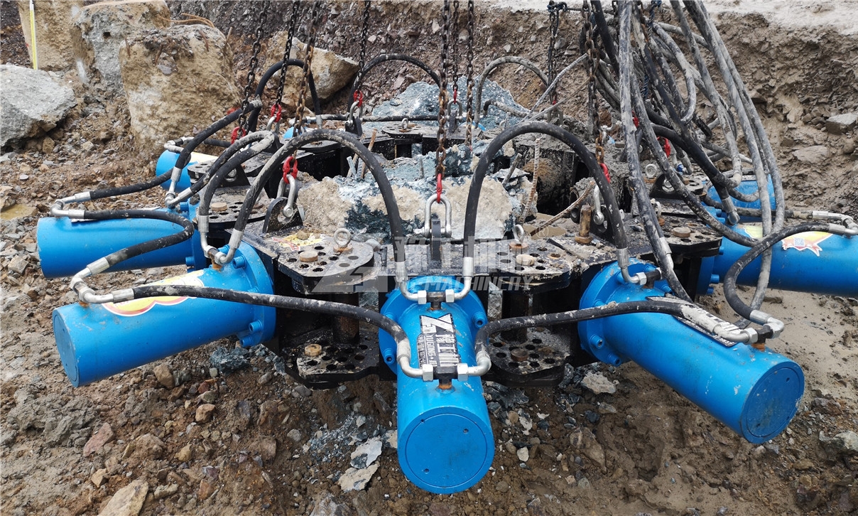 中鐵建工集團(tuán)下屬浙江臺(tái)州火車站房建工程項(xiàng)目工地直徑850-1100mm的圓柱形灌注樁,高約2-3米,施工方為了提高施工效率,摒棄老舊的人工破除法,改用豫工破樁機(jī)進(jìn)行機(jī)械破除。 本次施工采用挖掘機(jī)吊取破樁機(jī),并以它為移動(dòng)載具,同時(shí)作為動(dòng)力源提供破樁動(dòng)力。由施工人員指揮輔助將破樁機(jī)套入樁身,在截第一段時(shí),在距離樁上端面400mm左右處截,以后往下每隔距離不大于300mm左右截一次。在截后一段時(shí)先清除掉落在樁體周圍的碎混凝土,再對(duì)準(zhǔn)標(biāo)高線截后一次。 截完后,由一名施工人員將碎混凝土清除,使用工具將標(biāo)高線灌注樁表面處理平整。 試機(jī)過(guò)程中,豫工破樁機(jī)被客戶譽(yù)為工地破樁提速神器,直徑850-1100mm,高約2-3米的圓柱形灌注樁,每5分鐘破除!