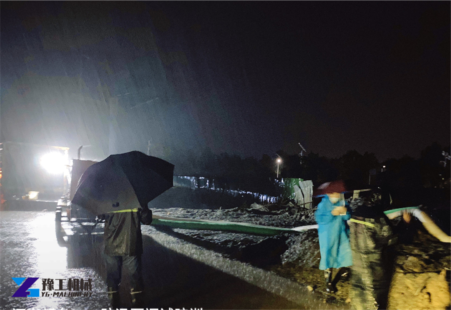 安裝調(diào)試一直持續(xù)到晚上,遭遇暴雨來(lái)襲,豫工技術(shù)員堅(jiān)守一線,與抗洪人員一道,全力以赴,通宵奮戰(zhàn),保證5臺(tái)防汛泵車全部投入工作,第一時(shí)間開(kāi)始執(zhí)行防汛吸水任務(wù)!